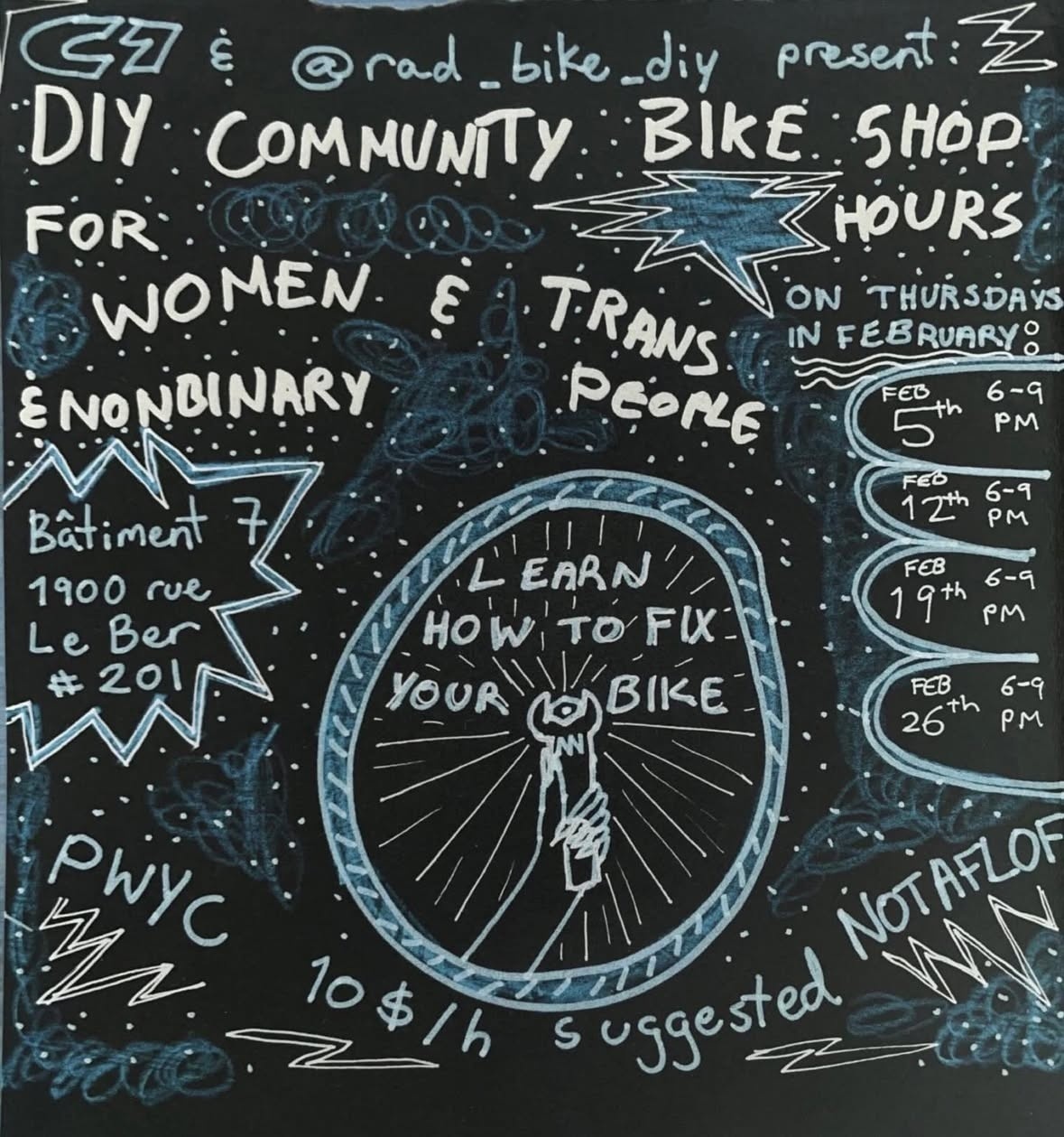 DIY community bike shop hours: for women & trans & nonbinary people